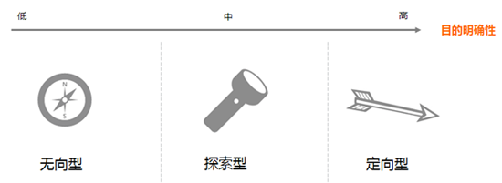 根据用户使用产品的目的明确性,我们把用户分为3个类型:无向型、探索型和定向型。